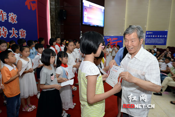 在这次颁奖典礼上,长沙市前文联主席李少白先生、长沙市众和教育高级训导师柳鹰翔女士分别致辞并寄予美好祝愿,长沙市作家协会唐樱女士、长沙市众和教育小荷文学院名誉校长薛小强女士为190名获奖的孩子们逐一颁奖。孩子们在颁奖典礼上献歌献舞,将气氛推上了高潮。