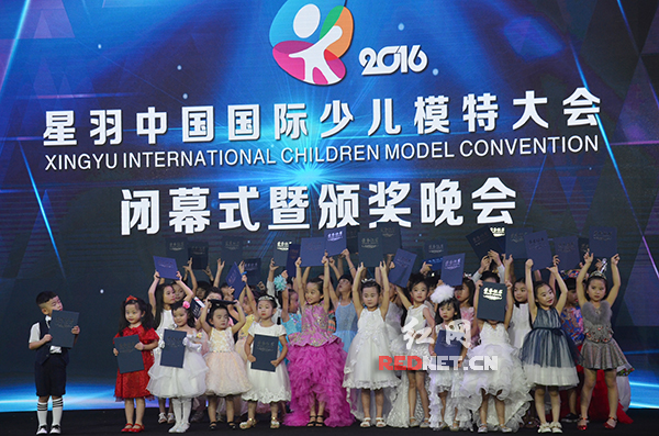 小模特们都获得“2016年度最佳少儿模特”的称号。 小模特们的才艺表演。 红网长沙7月29日讯(时刻新闻)7月29日晚,星羽中国国际少儿模特大会闭幕式在长沙举行,经过半年的甄选,来自全国十九个地区的120多名优秀少儿模特在这里聚集,带来一场充满欢笑的少儿模特大汇演。 现场的小模特们一个个自信活泼又可爱,多姿多彩的表演引来观众的阵阵掌声和赞许声。现场的每一位小模特都获得了由中国纺织品商业协会商业模特委员和星羽组委会共同颁发的“2016年度最佳少儿模特”称号。 星羽中国国际少儿模特大会是亚洲最具权威的少儿模特盛典,开辟了一个全新的少儿模特形式,每年都会添加新的内容和展现方式,为4-16岁孩子打造一个全新的多互动平台,搭建家长与孩子沟通的桥梁和参与空间。 今年星羽中国摆脱以往大赛单一评比的模式,由开幕式、时尚发布、亲子课堂、剧组导演亲临现场面试和闭幕式暨颁奖晚会五大板块组成,在比赛过程中,小模特们还为中国顶尖童装设计师孙海涛、独立设计师品牌韩国QT、私享定制品牌糯米熊三大顶级童装进行新品走秀及发布。 现场,星羽中国还与芒果影业共同启动儿童院线电影《守护星》,将为参赛的孩子们提供表演平台。同时,今年星羽中国还联手著名设计师孙海涛启动海涛天使梦,邀请了国内最专业的少儿教育管理机构为孩子及家长进行了亲子课堂,增强亲子之间的沟通和相互学习,成为孩子及家长们的互动平台。