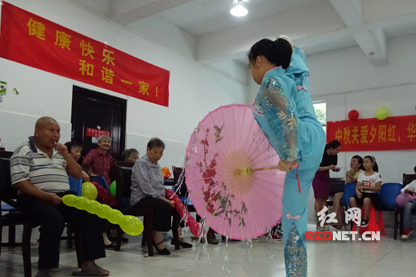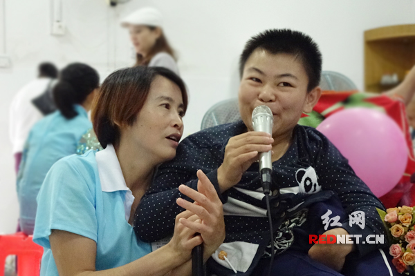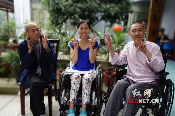 (福利院的残疾少年表演唱歌) (12岁的宁楚楚第一次来到福利院,为老人表演节目。) (福利院老人与邻里会成员一同参与包饺子) (易星珠老人为邻里会送上自制剪纸画) (肖卓作(中)开心地与孤寡老人聊天)红网长沙9月12日讯(时刻新闻)今天上午,长沙市雨花区华盛世纪新城小区的38位业主,来到雨花区社会福利中心,为该处32位孤寡老人及残障人士,做好热气腾腾的饺子、表演自创的节目,送上千余元慰问金及中秋前的祝福。 今年32岁的肖卓作,是该活动的发起人之一。“现在很多小区邻居都相互不认识,我们华盛小区也是湖南省直公务员小区,最近新成立了一个“邻里会”,我提出做公益后,得到的响应特别多,活动一天报名就满了。”肖作如介绍。今天是“华盛邻里会”的第一次活动,以后每月还会举办一两次公益活动。 肖卓作投身公益已有七年。与其他参与者不同,她如今身在轮椅,笑容却格外灿烂。2008年,她患上骨髓血管瘤,成为一名高位截瘫患者。“生病是在我新婚前一天,当时我得到了周围很多人的帮助,现在我希望用更多的努力帮助别人,生命是一个绽放的过程,我希望大家看到我的笑容,也会感受到阳光。”肖卓作说。2012年,她还荣获长沙市雷锋式道德模范以及“中国好人”等荣誉称号。 “因为肖卓作的事迹,很多人都比较感动,都愿意参与这次公益活动。”华盛小区另一成员梁展说。邻里会的成员们一边包饺子,一边为福利中心的孤寡老人及残障人士准备了12个节目,并邀请他们上台唱歌同乐,现场欢声笑语不断。 “现在的小孩子太活泼了,跟我们那时候完全不一样。”一位84岁的孤寡老人激动地说。“我原本不想来福利院的,但在这里生活得很好,经常有人来慰问,过年还有红包拿。我在这里住三年了,都舍不得换地方。 在福利院所有老人中,今年74岁的易星珠,显得十分开朗。她喜欢手工剪纸,特地为华盛邻里会送上自己亲手剪的花鸟图案。肖卓作收到后十分感动,她也用自己的事例与孤寡老人们聊天。“这些老人最需要的是陪伴,以后争取每人带一个菜来,多听听老人的心声。”肖卓作感慨道。