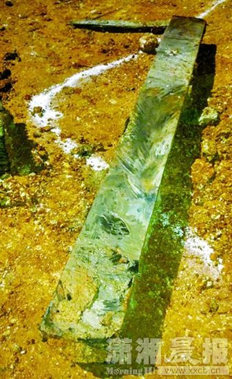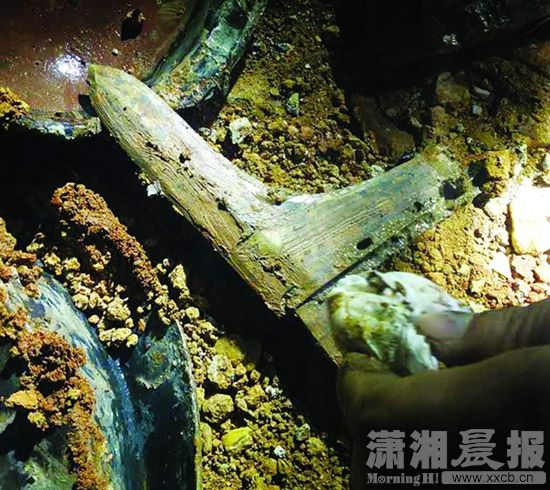 16日,考古人员发掘出一把古剑。图/潇湘晨报
